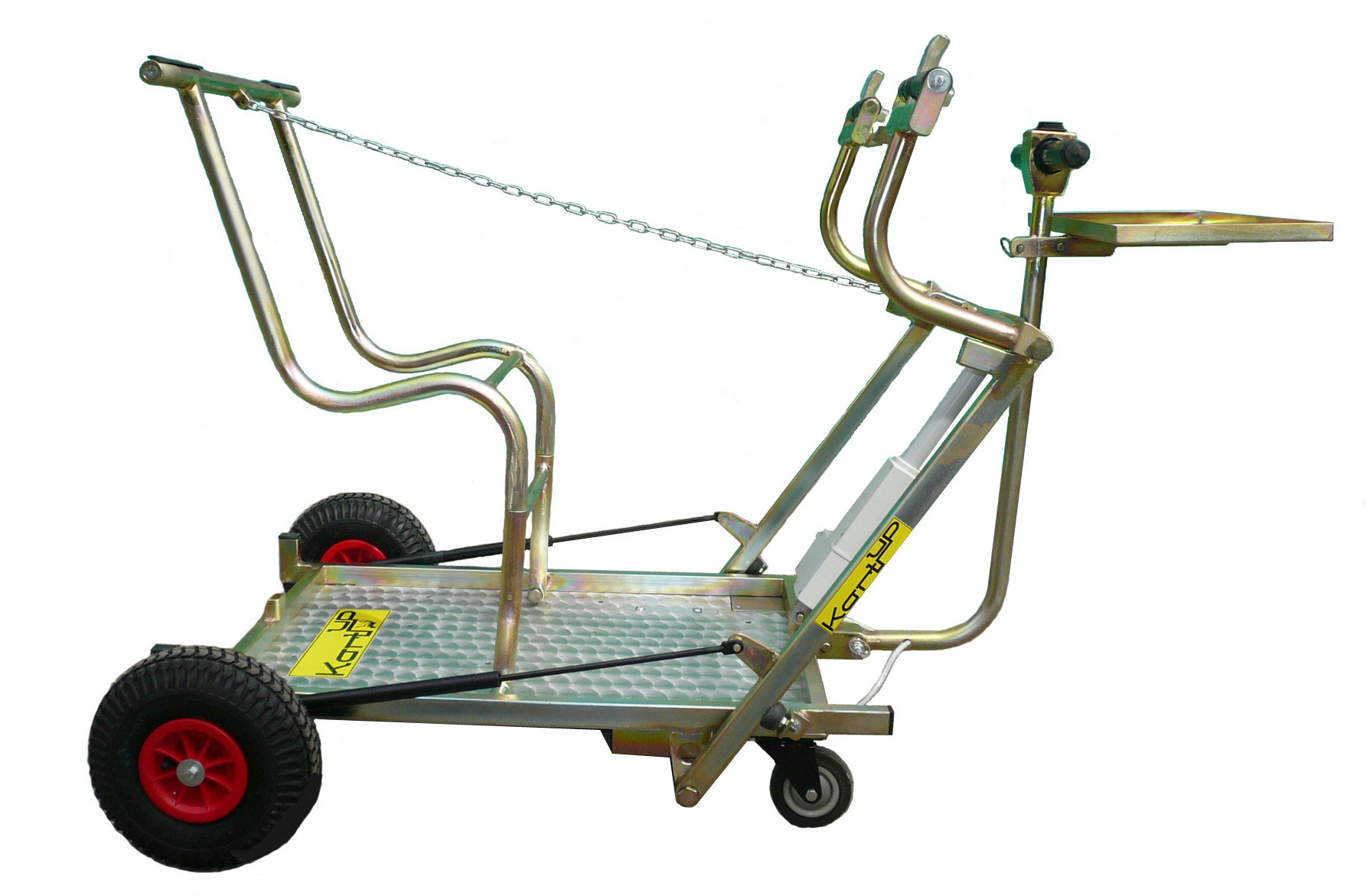 Il carrello Kartup tramite comando elettrico 24 Volt C.C., alza e abbassa qualunque tipo di kart senza alcun sforzo fisico.